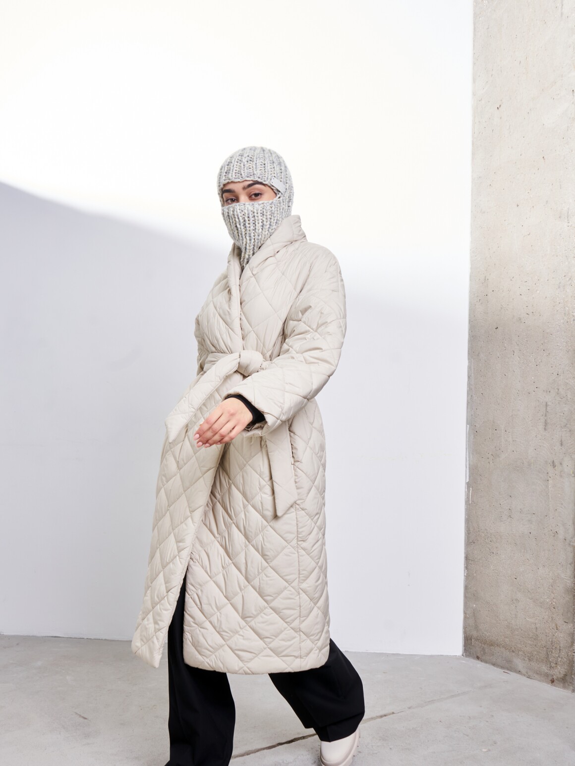 Утепленная стеганая куртка с высоким воротником
